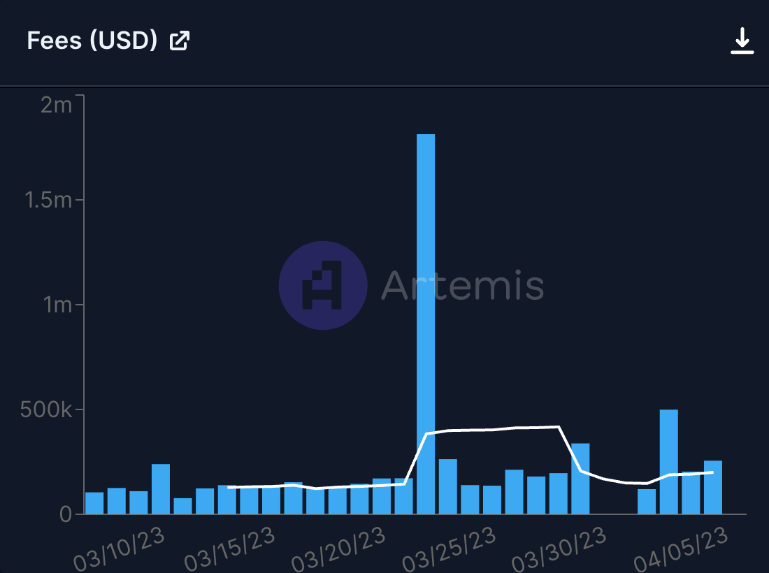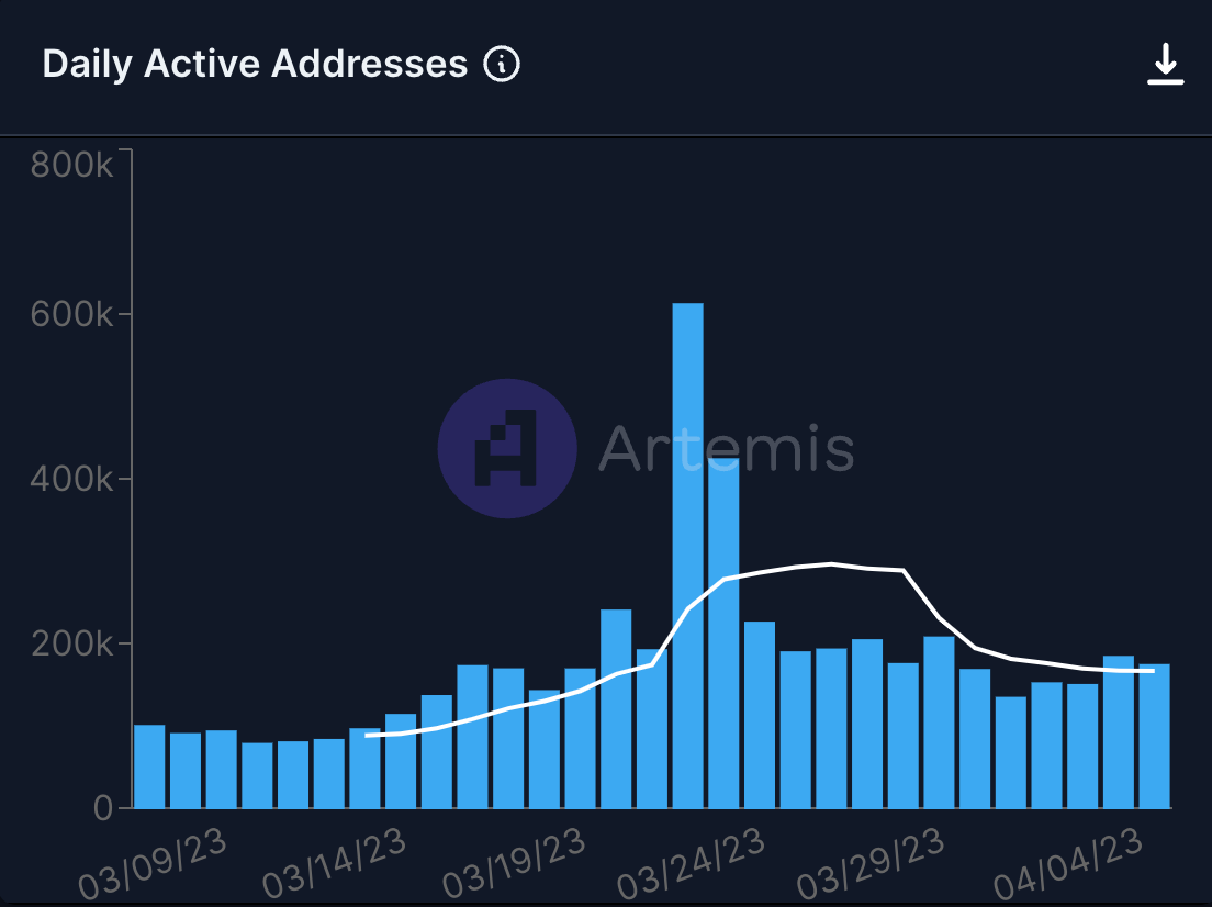 As expected, daily active users spiked on the day of the airdrop (March 23rd), rising 250%, as many users interacted on-chain to claim their airdrops. After the airdrop, daily active users are down 71%, but they have slightly increased from the number of users on-chain pre-airdrop: