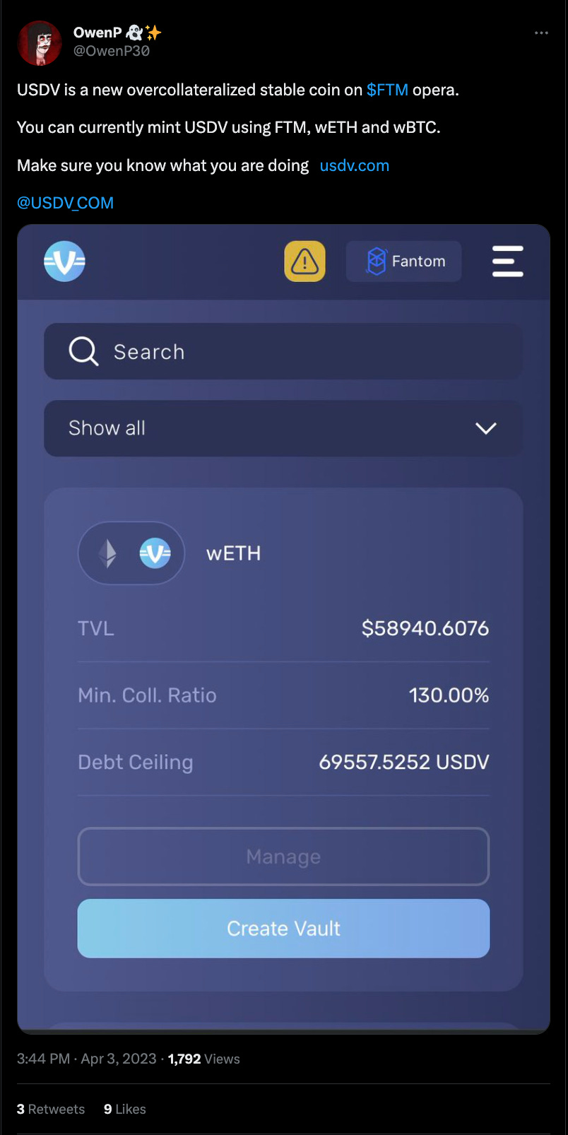 Apparently, the BD guy at Spooky Swap either found or created a stablecoin protocol on Fantom:
