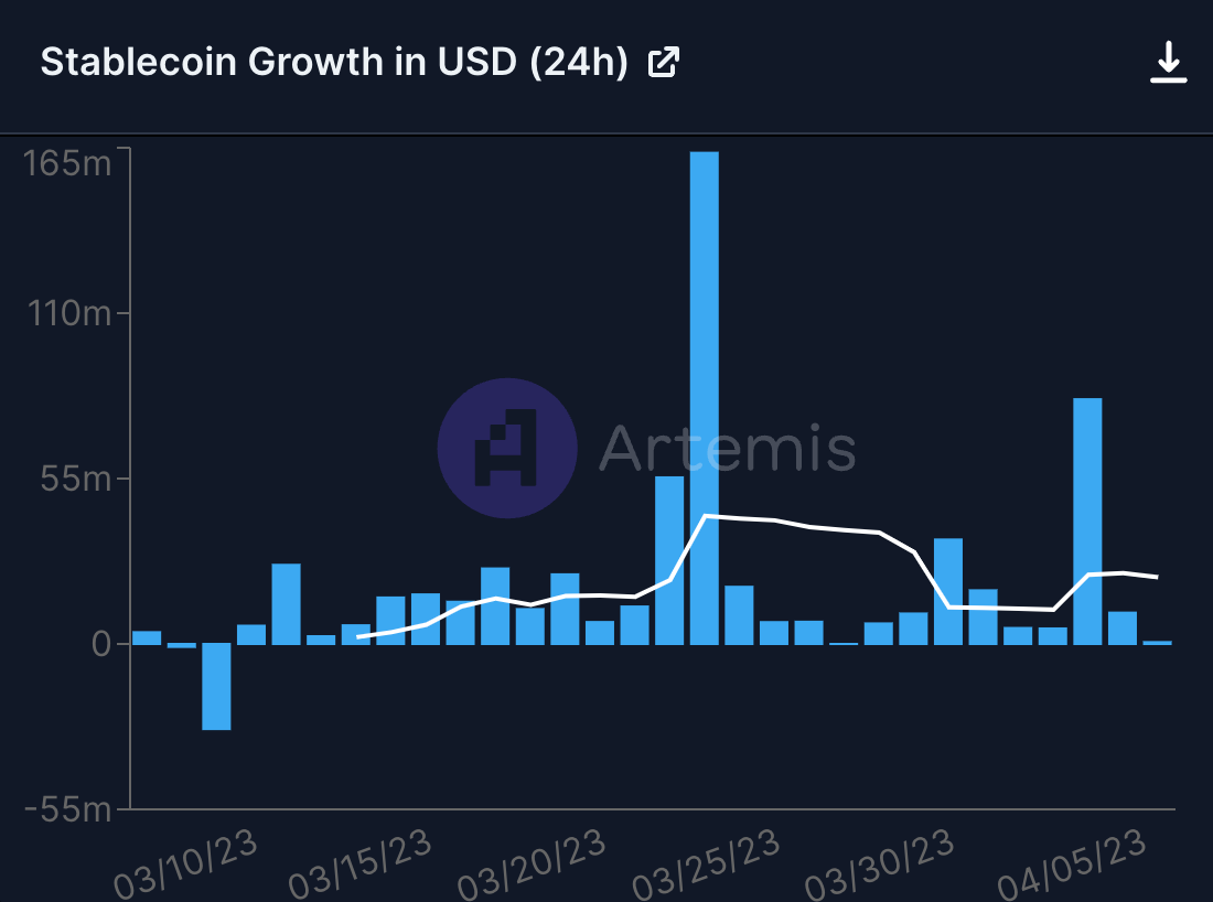 A similar story is shown in stablecoin growth: