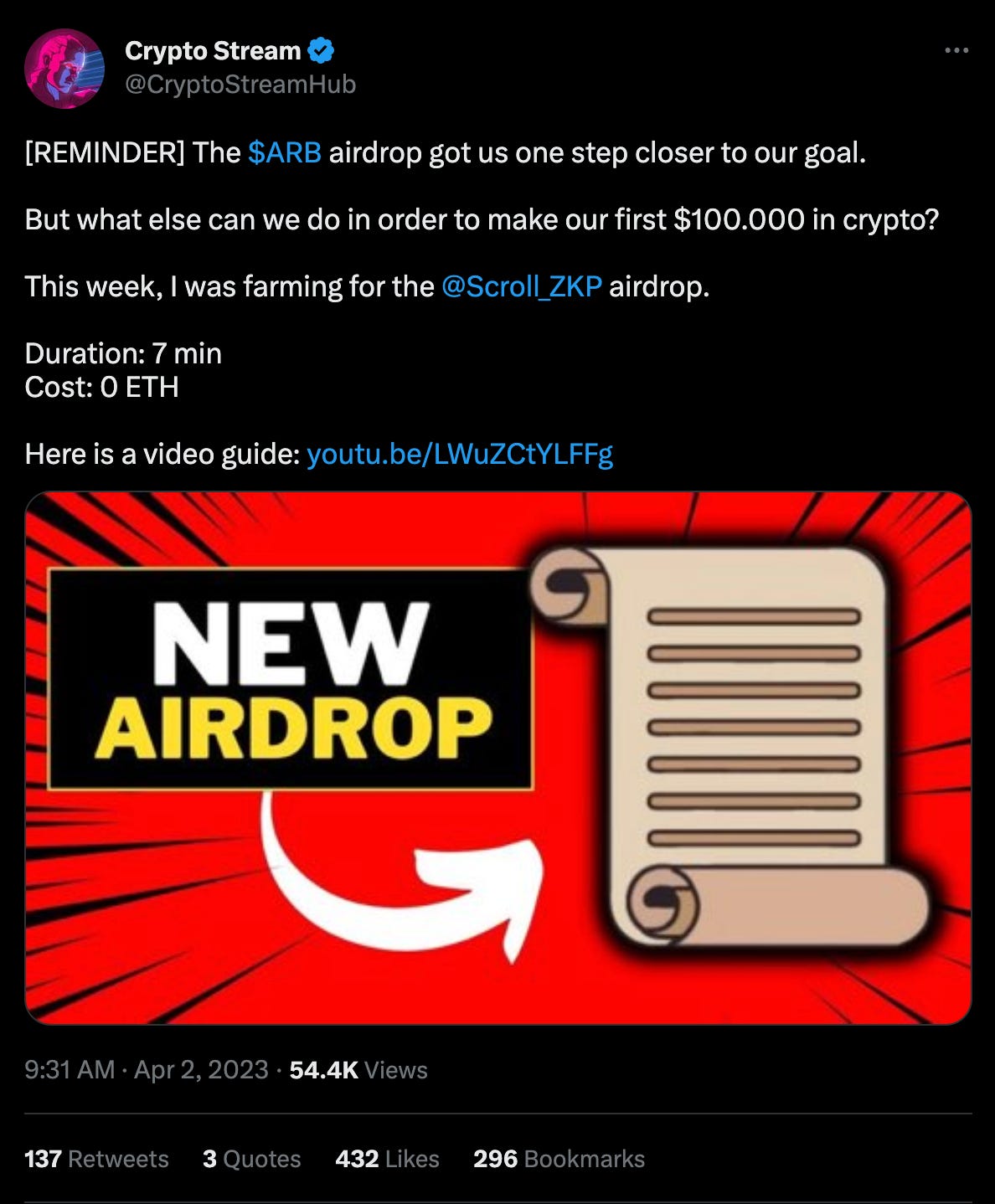 Video on the Scroll airdrop farming method: